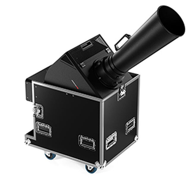 The SNOWCASE is the biggest, DMX controllable snow blower. It’s equipped with a low noise but powerful air blower and blows snow up to 15 meters! The snow head can be extended with a hose and mounted on a truss. Designed to create a big, realistic and magical snow effect.