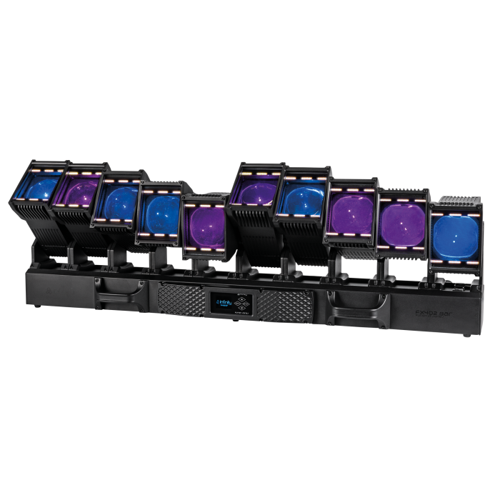 The Infinity Furion FX402 Bar is an IP65-rated LED batten with 10 high-power 60-watt RGBW LEDs in 10 tilt heads with zoom and 60 warm and cold white strobe pixel LEDs. It creates unique light effects, igniting creative ideas for live events, TV shows, club and theatre settings, and more.